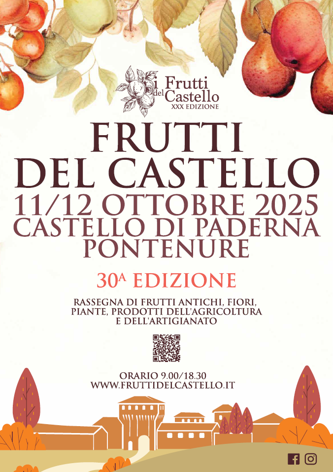 11-12 Ottobre 2025 - presso Castello di Paderna - Rassegna frutti antichi, fiori, piante e prodotti dell'agricoltura e dell'artigianato - ingresso a pagamento